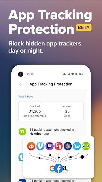 Protect Your Privacy in Other Apps (Beta) – Block most hidden app trackers in other apps day or night, and prevent third-party companies from invading your privacy with App Tracking Protection. This feature uses a VPN connection, but is not a VPN. It works locally on your device and does not collect personal data.