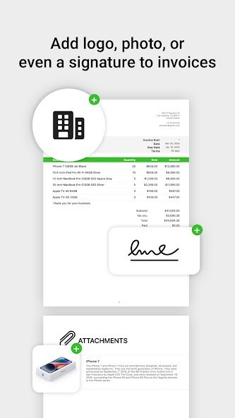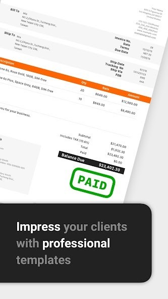 * Create invoices and estimates with only several taps from lots of elegant templates, like using a rapid generator;