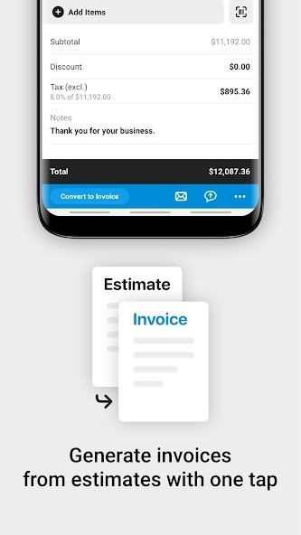 * Create and manage invoices and estimates no matter when and where -- facing customers, closing stores, or starting a wonderful working day;