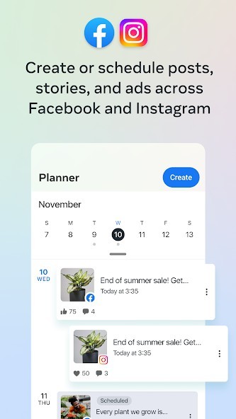 Use this app to:• Create, schedule, and manage posts and stories across your Facebook Page and Instagram account