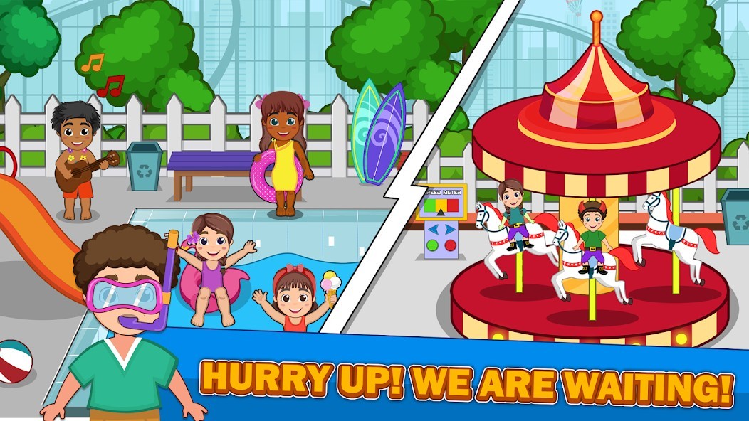 Discover different play rides in amusement park while your visit during high school vacations. Explore the virtual imaginative world enjoying multiple fun rides in this role play theme park. Manage multi scenes with free amusement rides & food carts which are especially made for autistic people. Show your artistic story making skills to have fun in theme park.Be brave enough to ride a giant roller coaster or high ferris wheel? Find out in the all new amusement park simulation games for girls which are available free offline! Latest doll house game with food fair and cool rides. There are all kinds of fun adventures to have as you explore the park and try out outings like the merry go round, the roller coaster, chair swing ride and more! Legendary pirate dragon boat with your friends in this pretend game for girls. Take care of yourself while playing to avoid hospital services of the city.