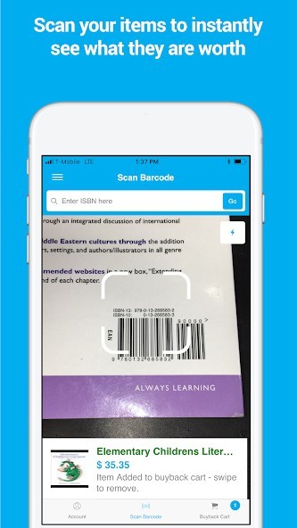 Sell Back Your Book allows you to get instant price quotes for over 2,000,000 books from your android phone by scanning the barcode of the book or entering the ISBN. We provide free shipping on all orders!The process: