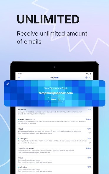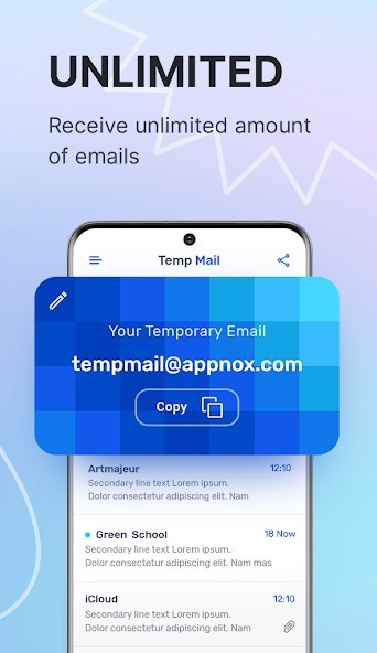 No limits – create multiple inboxes. Lasts for unlimited period of time. Anonymous.Temp Mail is a lifehack in the era of information overload. The Temp Mail app lets you forget about annoying ads, spam, and phishing attempts in your real inbox. Get your temporary fake email generated as soon as you access the app. Receive letters, coupons, and access confirmation right away and get them stored for two days. With Temp Mail, you can keep your real email clean and safe, as well as stay private while signing up at various online services and websites.